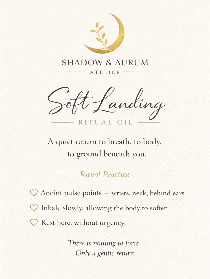 I absolutely love the Soft Landing Ritual Oil! The quality is amazing and you can tell a lot of care went into making it. The scent is calming and grounding, and applying it to my wrists has become a really comforting little ritual when I’m feeling anxious or overwhelmed. It helps me pause and reset during stressful moments. I will be back for more!