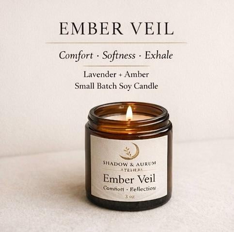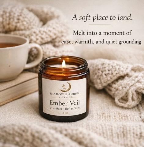 Ember Veil is a warm, grounding blend of lavender and amber — designed to wrap the senses in quiet comfort. This candle is part of the Comfort ritual, created for moments when you need to soften, exhale, and be held.