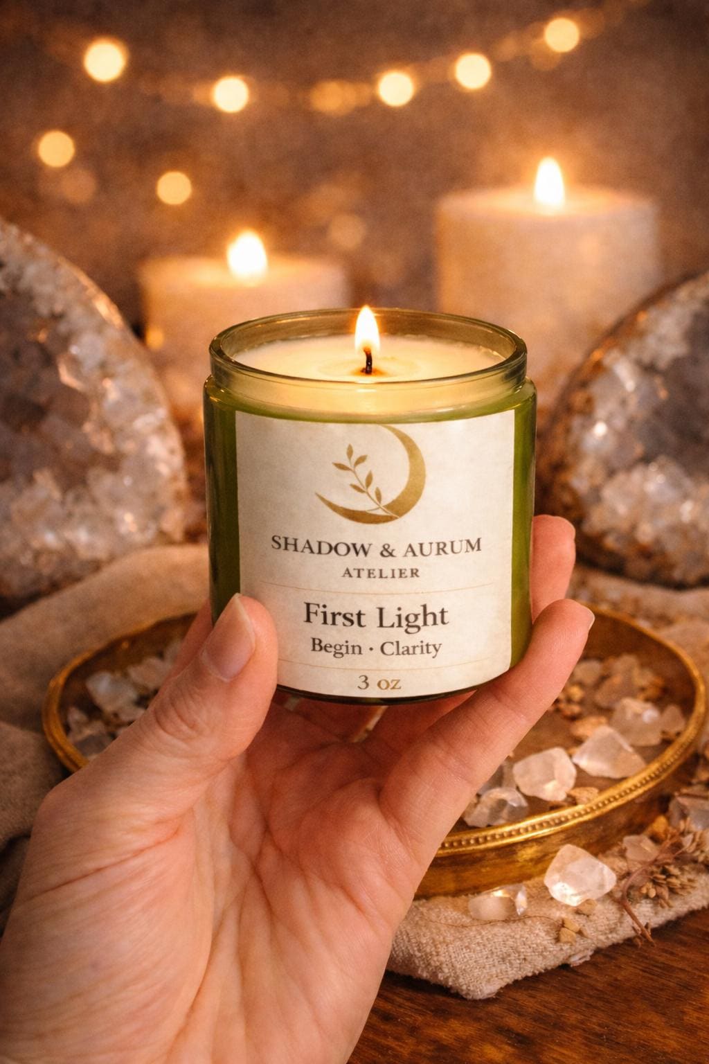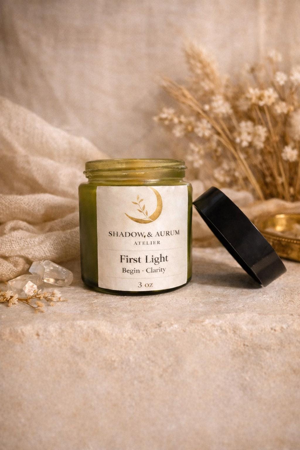 Natural Eucalyptus, Soy Wax, Wood Wick| Intention; Clarity, Focus| First Light Ritual Candle