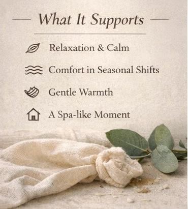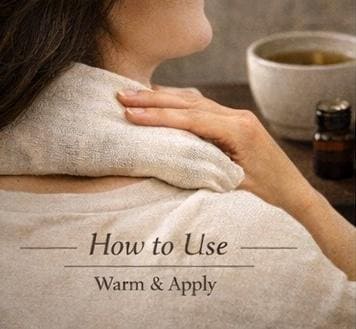 A thoughtful blend of lavender flowers, chamomile, eucalyptus, and peppermint is layered with natural rice inside a breathable muslin wrap. When warmed, the compress releases a soft herbal aroma and comforting heat, creating a grounding sensory experience.