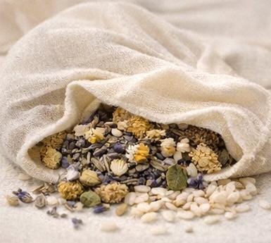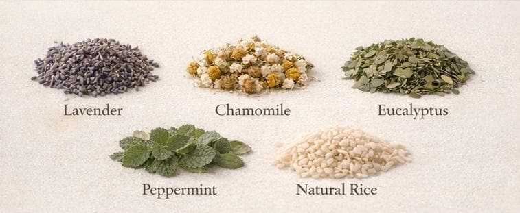 • Filled with dried botanicals + natural rice