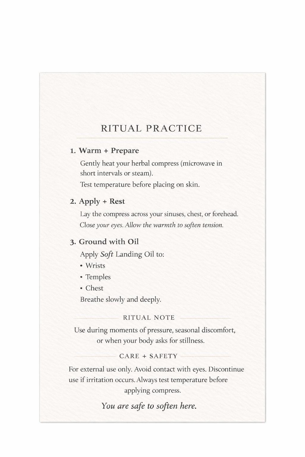 A warming ritual for moments of stillness and ease during times of heaviness and overwhelm.