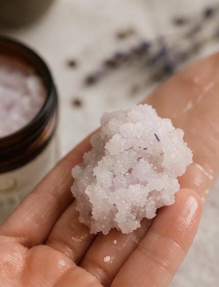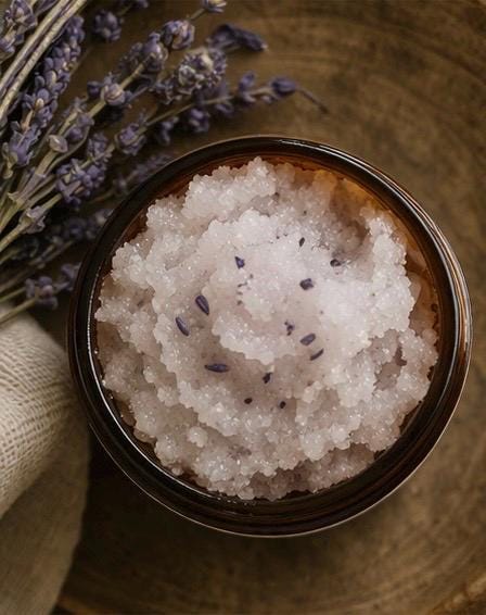 As the scrub warms between your hands, the aroma of lavender unfolds — creating a moment of calm within your day.
