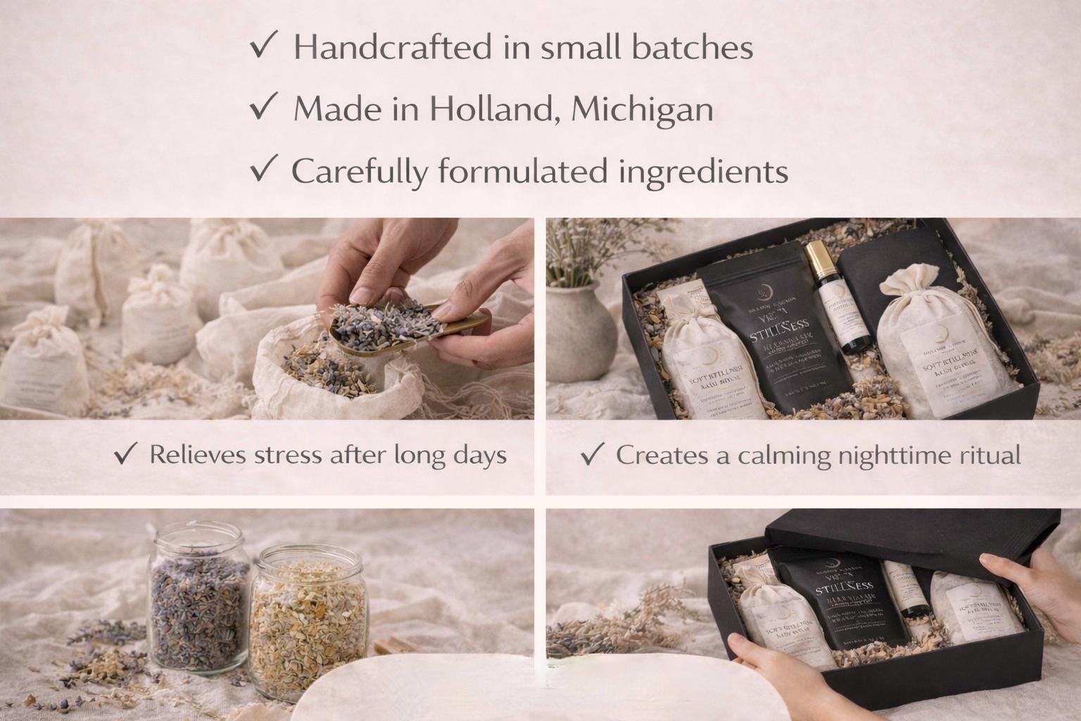 β’ Soft Stillness Bath Ritual (Botanical soak in muslin bag)
