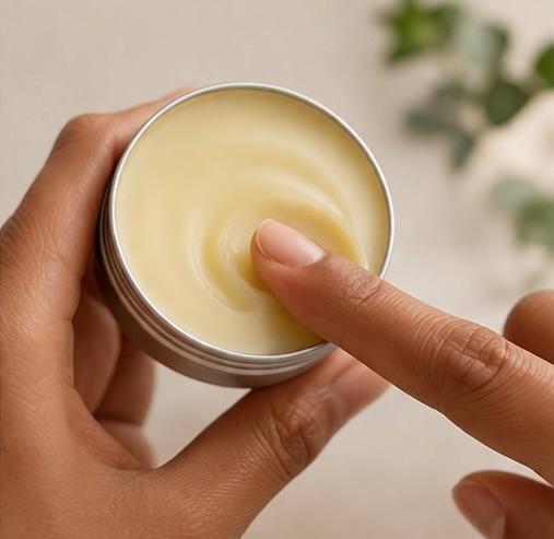 A grounding blend of coconut oil, beeswax, eucalyptus, peppermint, and camphor essential oils.