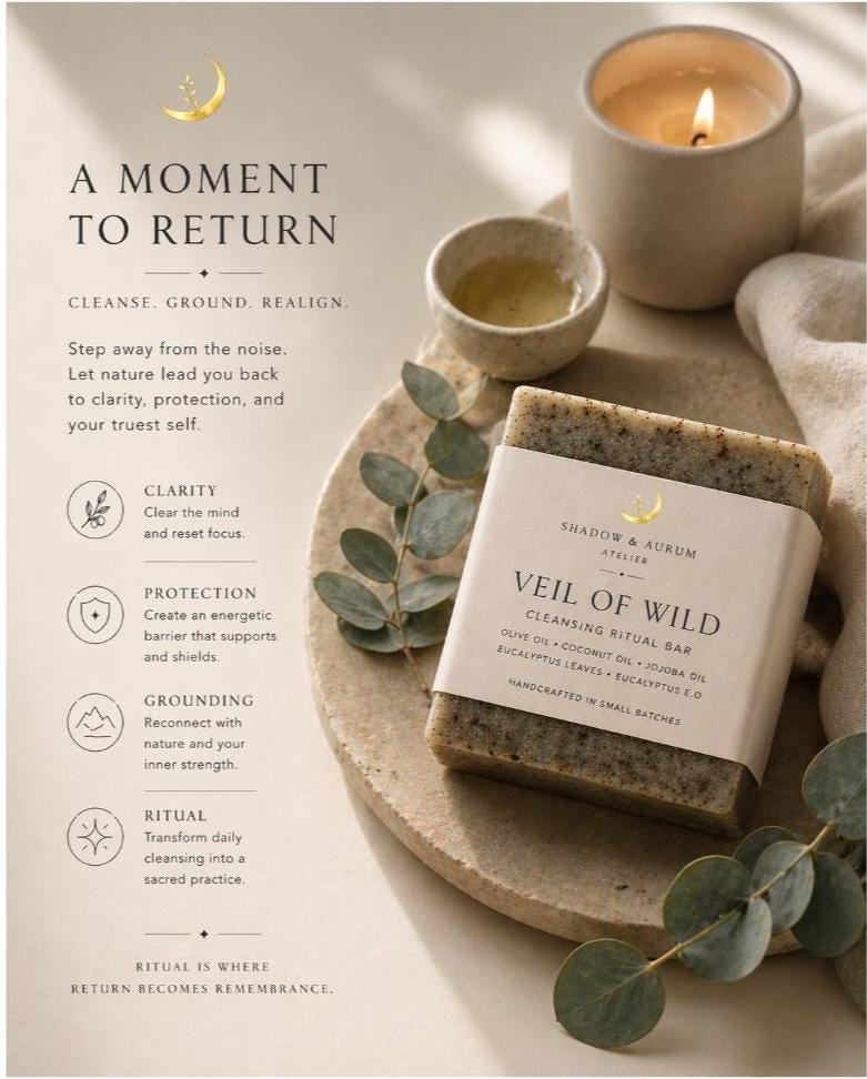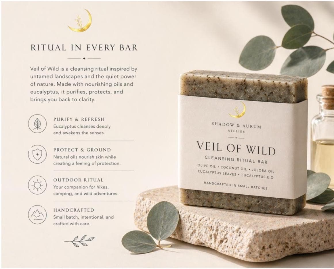 Veil of Wild is a botanical cleansing bar crafted for those who move through nature—long walks, slow mornings, sun-warmed skin, and the quiet return home.