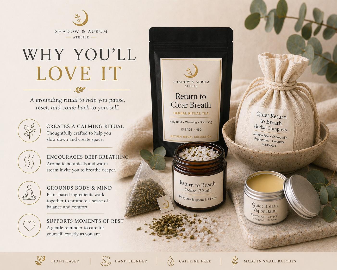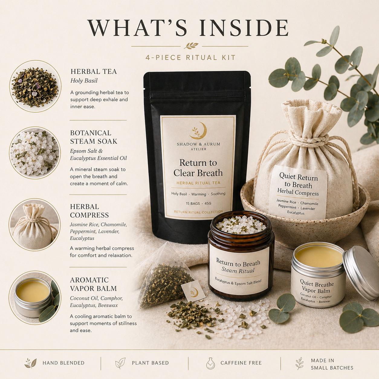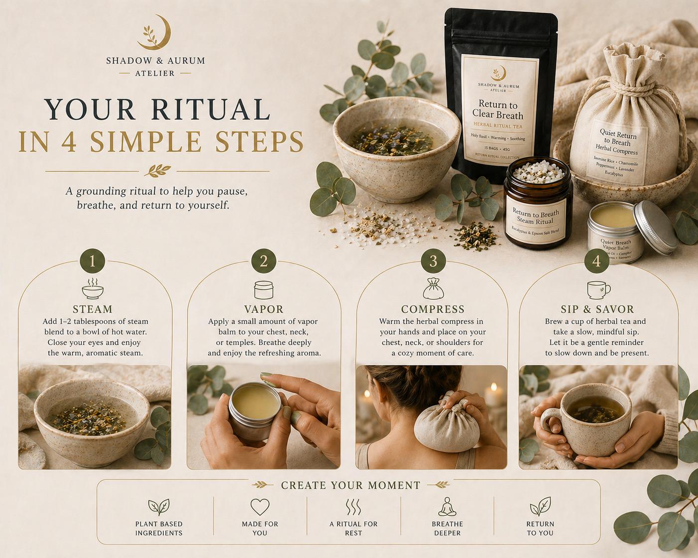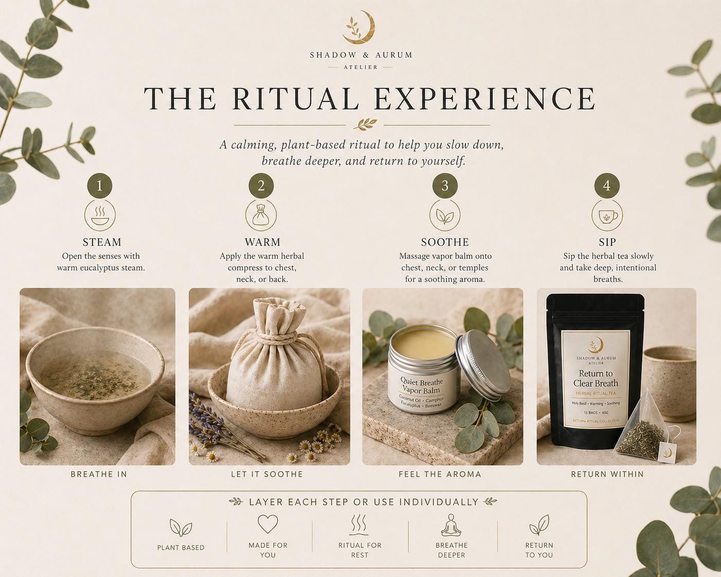 Clear Breath Ritual Kit | Eucalyptus Self Care | Herbal Tea, Steam Soak, Botanical Compress, Vapor Balm | Relaxation Sensory Reset Ritual
