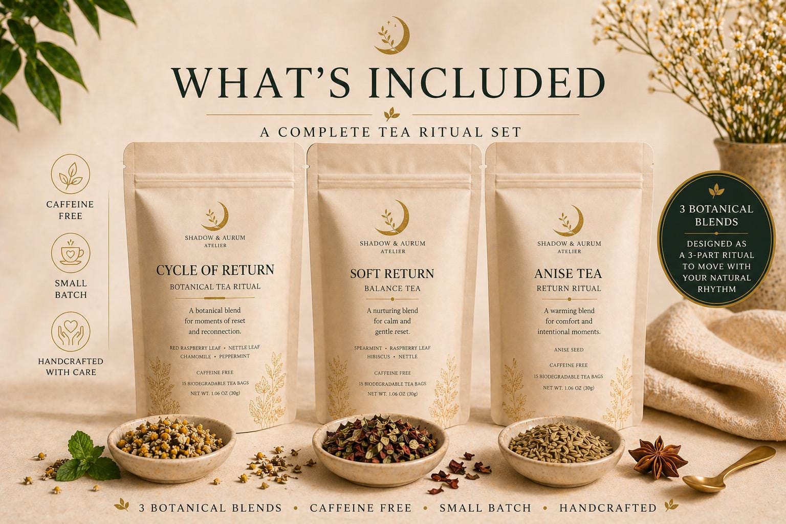 The Return Ritual Tea Set – Herbal – Warming Botanical Trio – Monthly Ritual