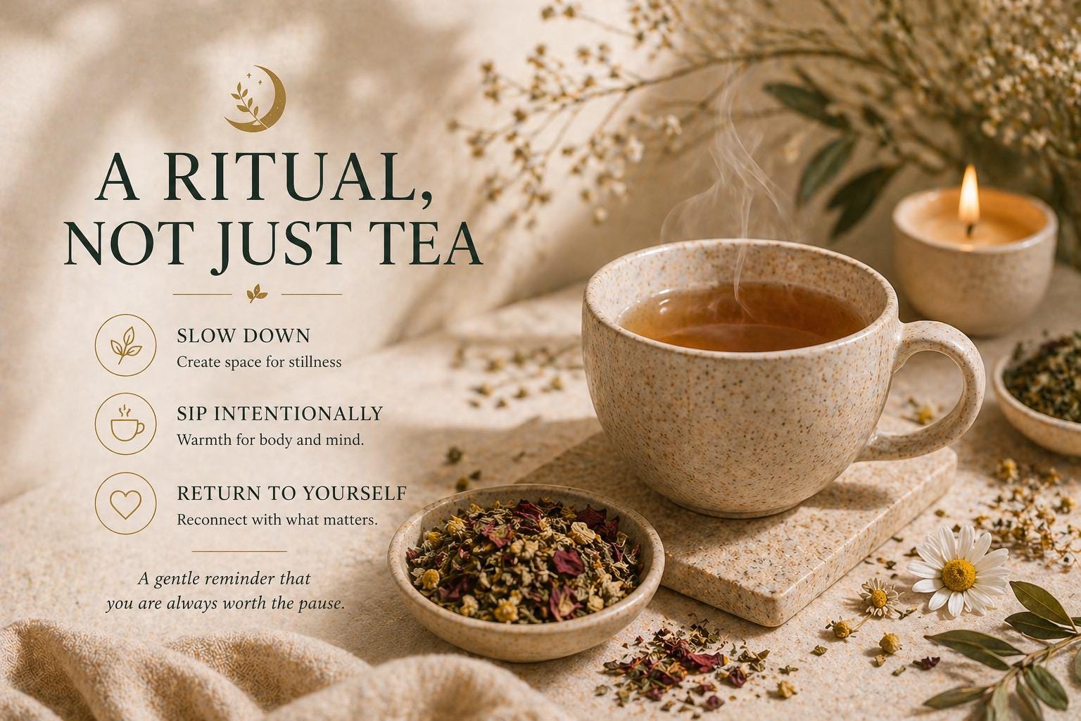Each blend invites you to slow down, reconnect, and create space for yourself — turning an everyday cup of tea into a grounding ritual.